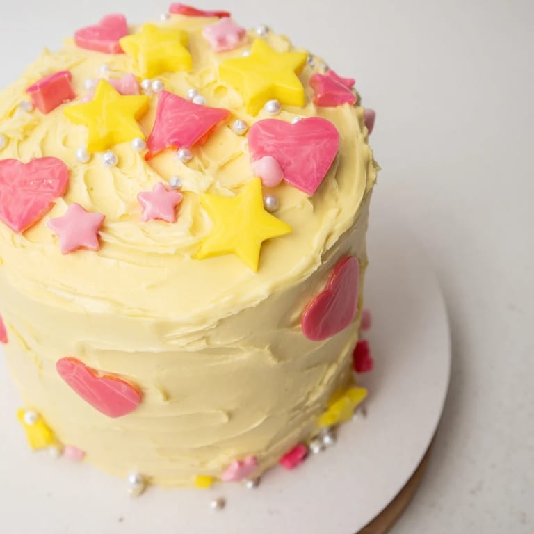 - Decorations: Heart and star-shaped sugar decorations, Edible glitter or pearls (optional)