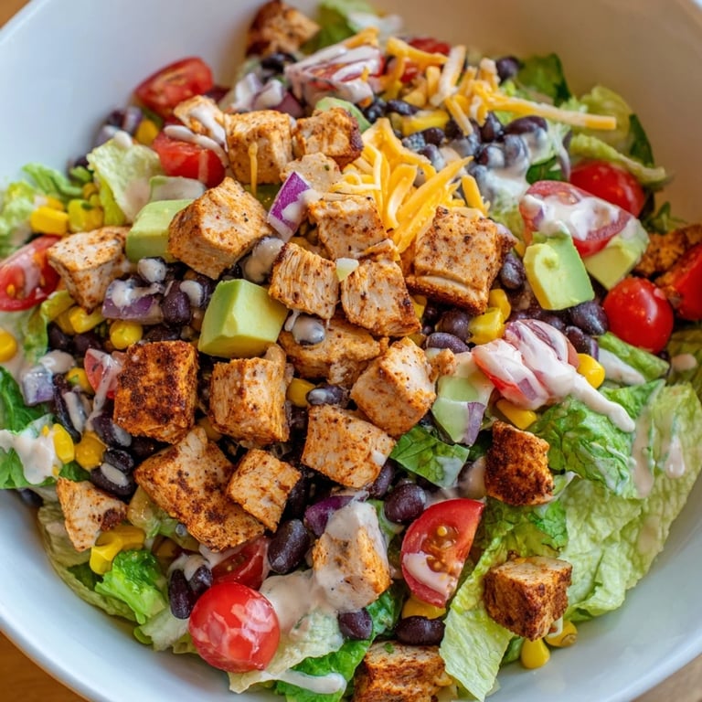 You can swap the chicken for grilled shrimp, seasoned ground turkey, or even crispy chickpeas if you want a vegetarian version. I've also added sliced radishes for extra crunch, swapped the cheddar for crumbled cotija, and tossed in fresh cilantro when I have it. If you like heat, throw in sliced jalapeños or a dash of hot sauce in the dressing. The base is flexible enough that you can use whatever vegetables or proteins you have on hand and it still tastes like a complete meal.