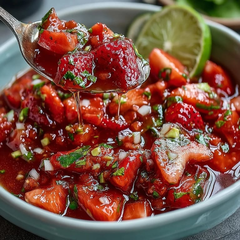 Save Last summer, my neighbor showed up at a backyard dinner with a mason jar of the most impossibly bright strawberry salsa, and it completely rewired how I thought about fruit in savory applications. The first spoonful hit like a flavor revelation—sweet berries playing against jalapeño heat and lime brightness in a way that felt both playful and somehow sophisticated. I spent the rest of the night watching people's faces light up as they discovered it on their fish tacos, and by midnight I was demanding the recipe. Turns out it takes barely fifteen minutes, which made me feel a little silly for never having tried it sooner.