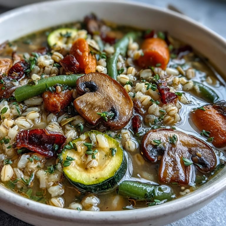 Pearl barley is one of those ingredients that transforms a soup from thin and forgettable into something hearty and substantial. It absorbs the broth's flavors while releasing its own starch, creating a naturally creamy texture that makes you feel full and satisfied without any cream. The kernels soften into tender little parcels that catch your spoon and make each bite feel complete, which is why this soup works as a full meal rather than just a side.