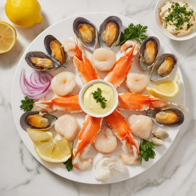 - → What sauces complement this seafood arrangement?