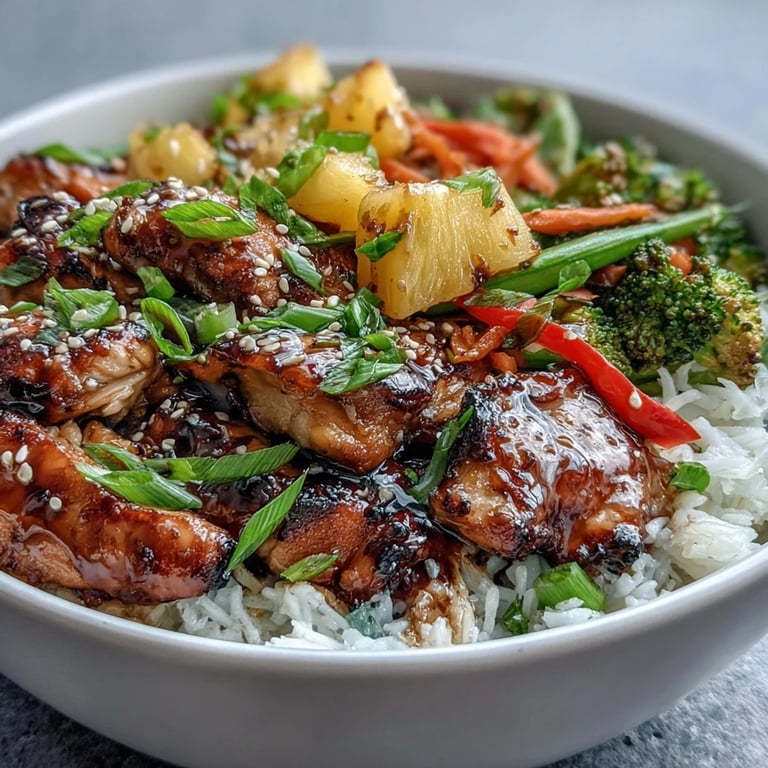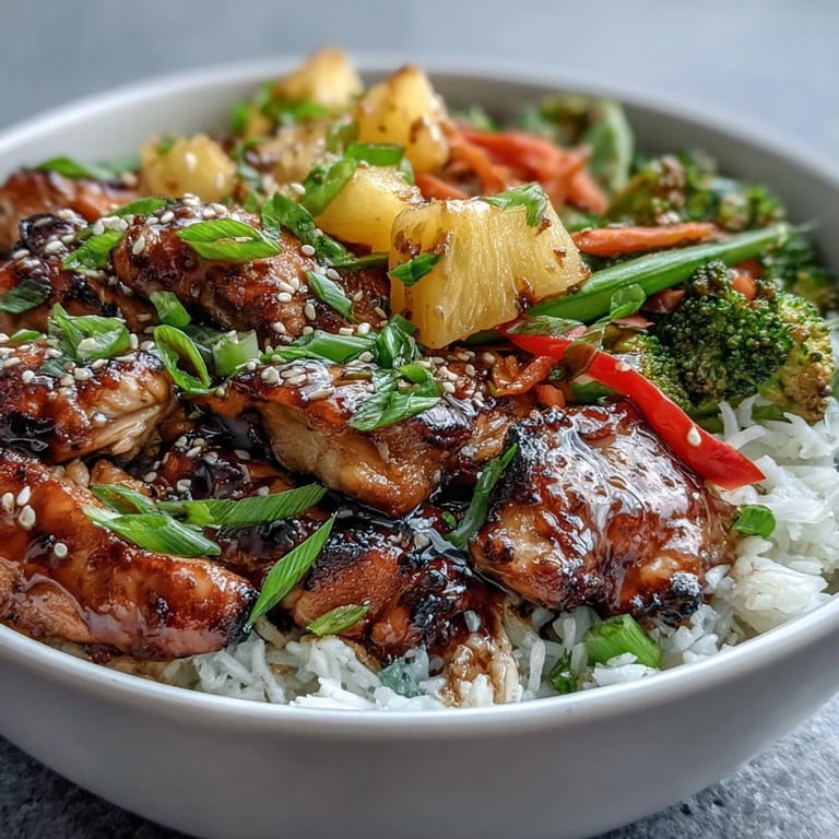 This bowl is a canvas, not a strict recipe. I've swapped chicken for tofu, added mushrooms when I had them, and once even stirred in leftover roasted sweet potato because it needed a home. The teriyaki sauce is forgiving enough to welcome whatever vegetables are lurking in your crisper, and the pineapple can be replaced with mango or even a handful of edamame if you're feeling less tropical. Trust your instincts and taste as you go.