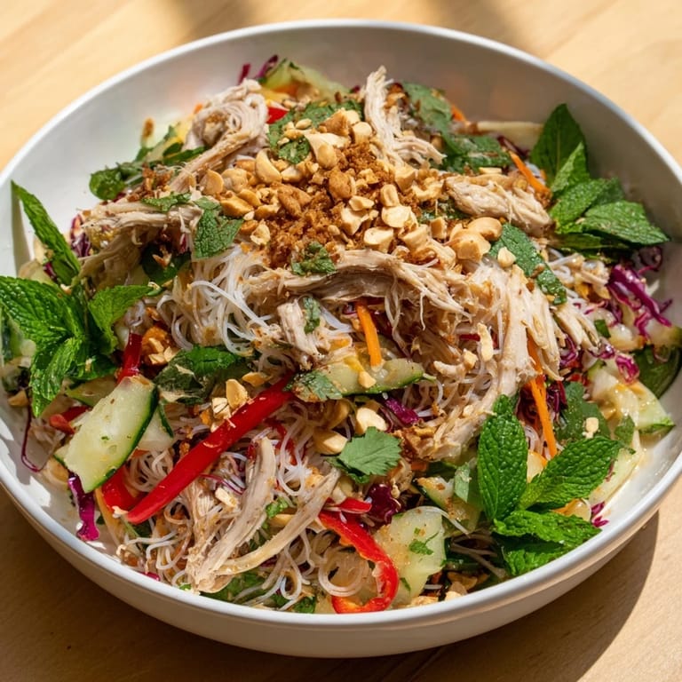 Save A vibrant, refreshing salad featuring tender shredded chicken, crisp vegetables, and rice noodles tossed in a tangy, aromatic Vietnamese dressing. Perfect for a light lunch or colorful dinner.