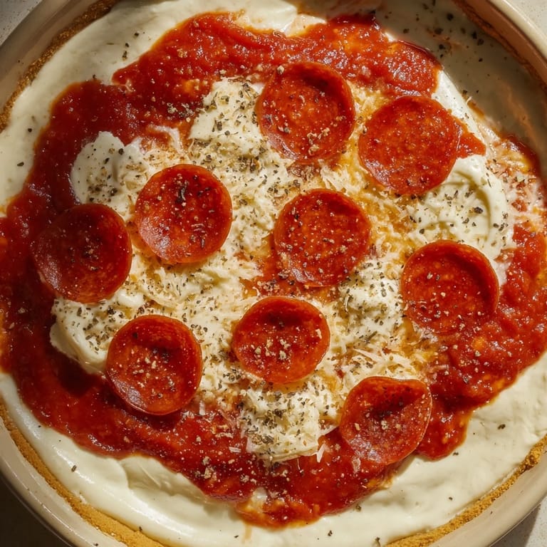For a vegetarian version, omit the pepperoni or use vegetarian pepperoni. Add chopped bell peppers, sliced olives, or sautéed mushrooms for extra pizza flavor. Serve with gluten-free crackers or sliced veggies for a gluten-free option. Pairs well with a light Italian red wine or sparkling water.