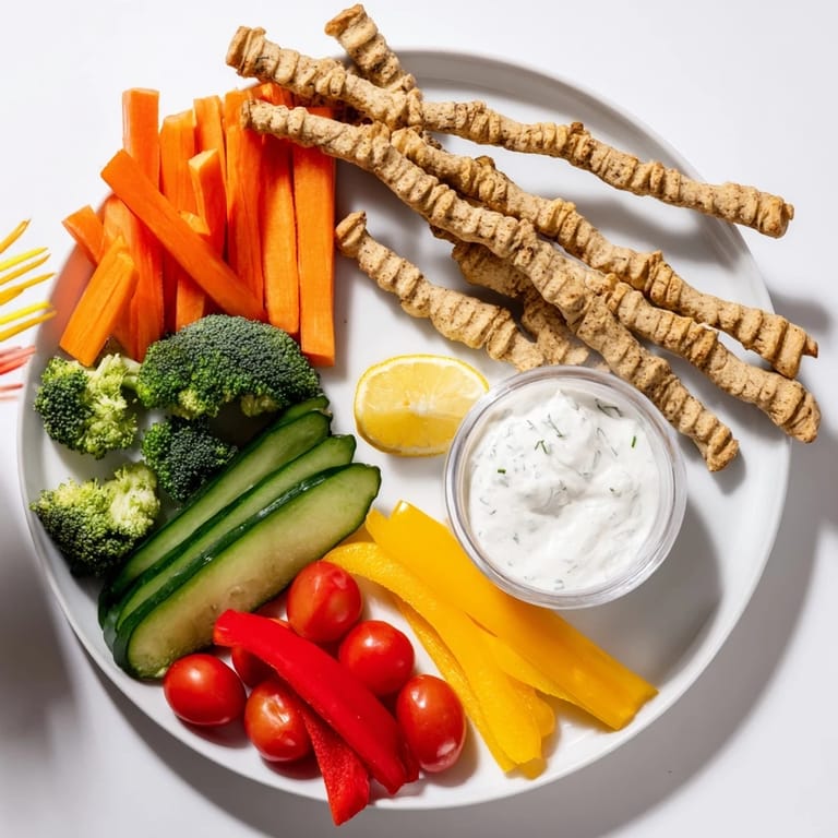 - Place the breadstick bones among the vegetables. Serve with the dip on the side.