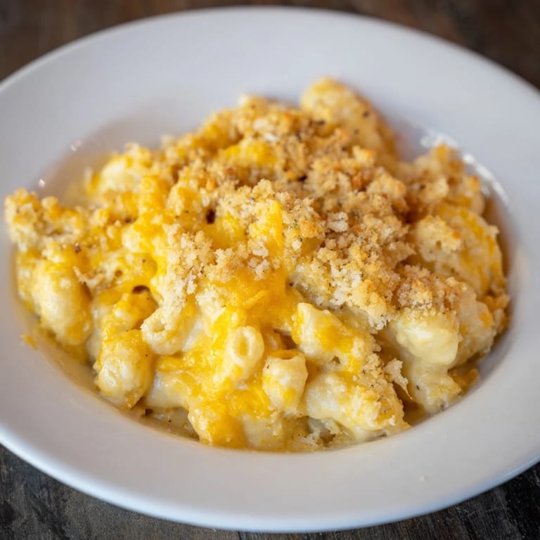 Save A creamy, nostalgic classic featuring tender elbow macaroni baked in a rich, cheesy sauce with a golden breadcrumb topping. Perfect for family dinners or gatherings.