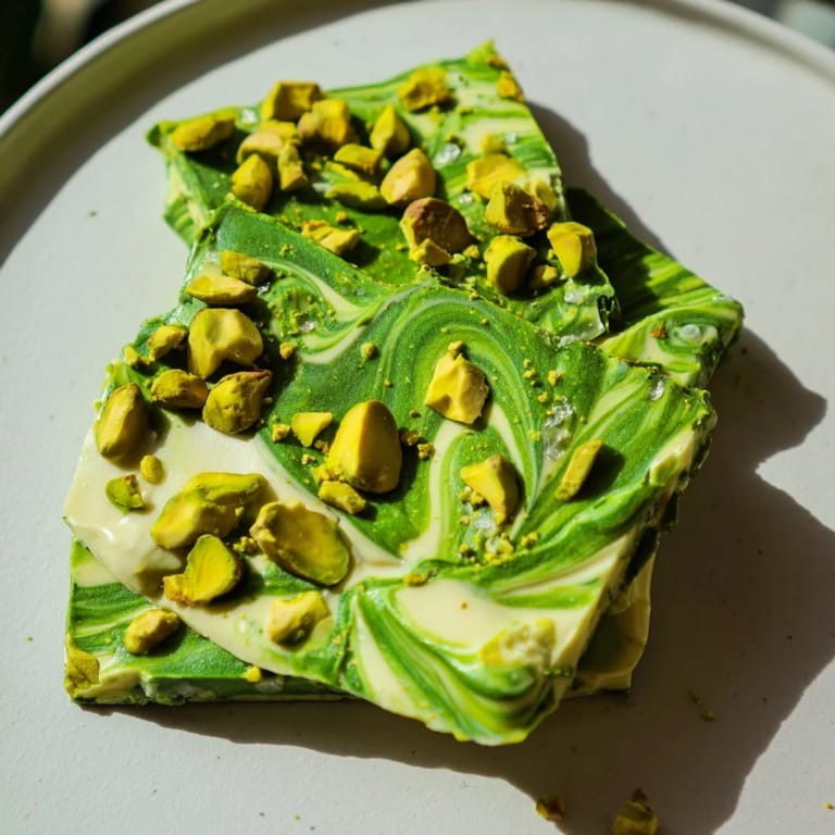 I discovered this chocolate bark on a Tuesday afternoon when a friend arrived with a small tin of ceremonial matcha and insisted I do something interesting with it. We ended up melting white chocolate at my kitchen counter, and I remember the moment the matcha hit the warm surface—this unexpected, vivid green that looked almost too beautiful to eat. That first swirl with a toothpick felt like painting, and when the pistachios caught the light, I knew we'd stumbled onto something special.
