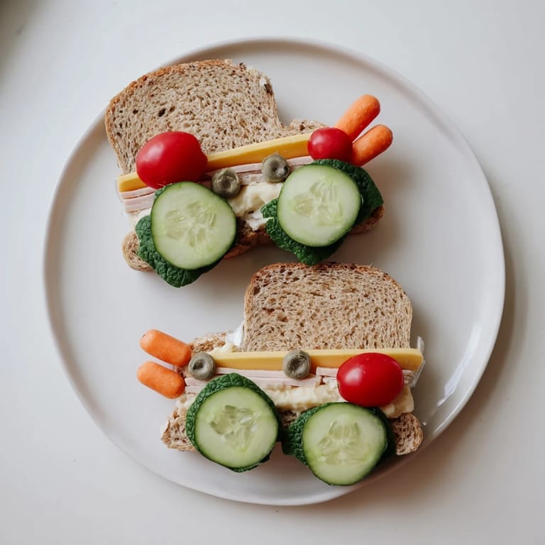 Use a large car-shaped cookie cutter or a sharp knife to cut assembled sandwiches into car shapes for a fun presentation.