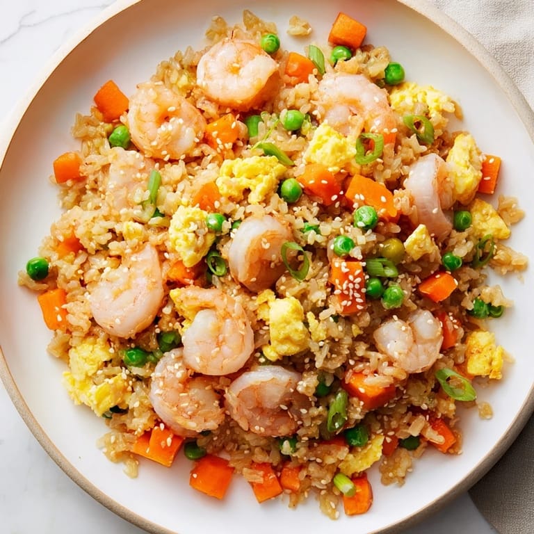 Save I discovered this shrimp fried rice hack on a random Tuesday night when I had exactly ten minutes before guests arrived and a fridge full of shrimp and yesterday's rice. The beauty of this recipe isn't just its speed, it's how it tastes like you spent an hour at the stove when really you were just moving fast and confident. That first time, the aromatic sizzle of shrimp hitting hot oil set the tone, and by the time my friends walked in, the dish was plated and steaming.