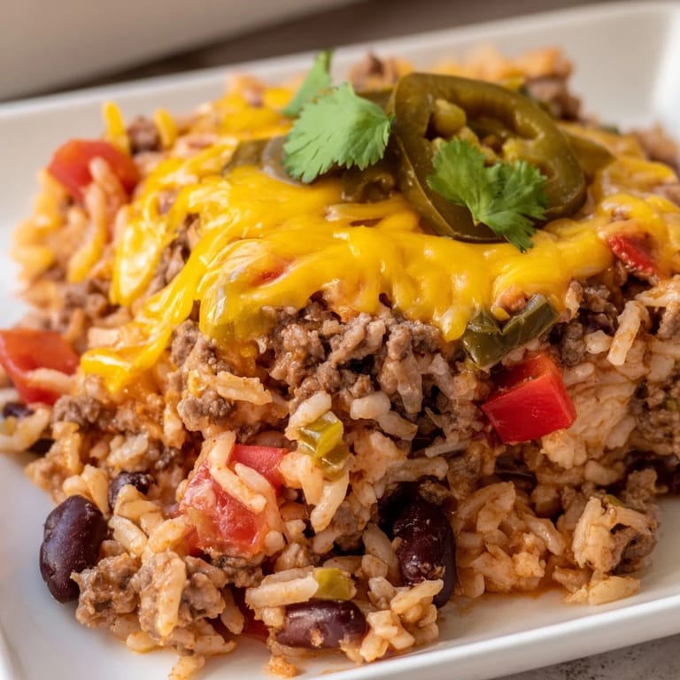 I remember the first time I made this casserole for a family gathering. Everyone loved how the savory beef, fluffy rice, and gooey cheese came together, making it a regular request ever since.